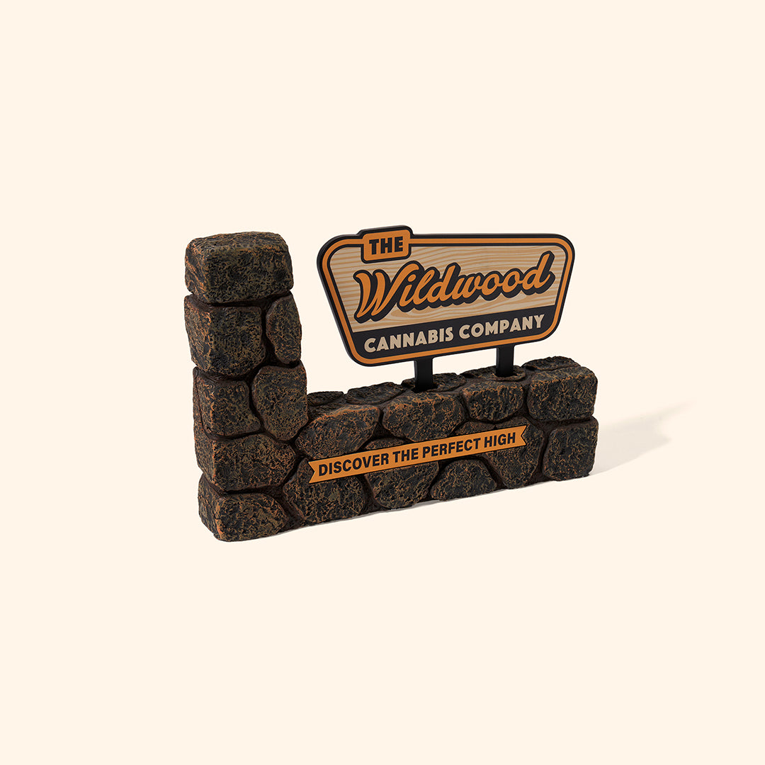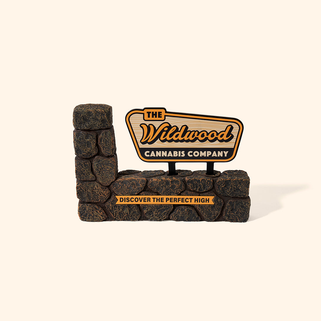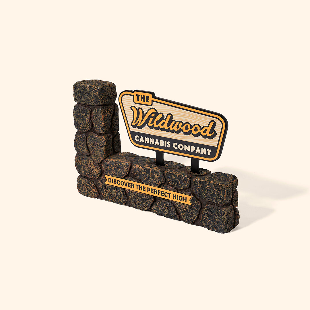 Welcome to Wildwood. Out National Parks Sign captures the timeless spirit of the great outdoors. Inspired by the iconic entrance signs that greet visitors to some of nature's most breathtaking landscapes, this 13" wide by 9" tall display features a rugged, stone-like base topped with the Wildwood Cannabis Company nameplate and a bold “Discover the Perfect High” placard. Designed to evoke adventure, exploration, and the beauty of nature, it’s the perfect countertop statement piece to remind your highly adventurous customers to discover their perfect high.